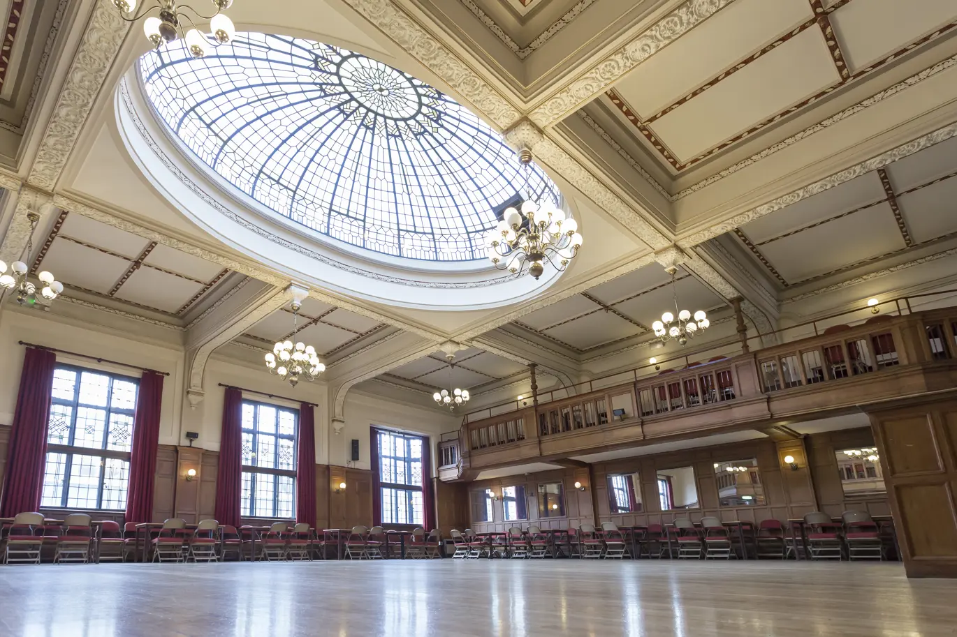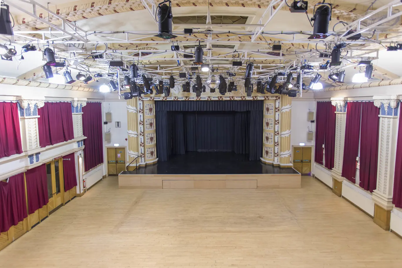 This is the Winding Wheel Theatre’s second largest space. It has stunning 1930s decor, a sprung dance floor, minstrels’ galleries and an impressive stained glass dome ceiling. The Ballroom has an integrated PA system and mixing desk, a private bar, full catering facilities and access to dressing rooms.